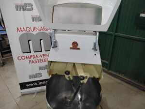 Sus brazos airean la masa sin recalentarla. Artesa de acero inoxidable. En perfecto estado.