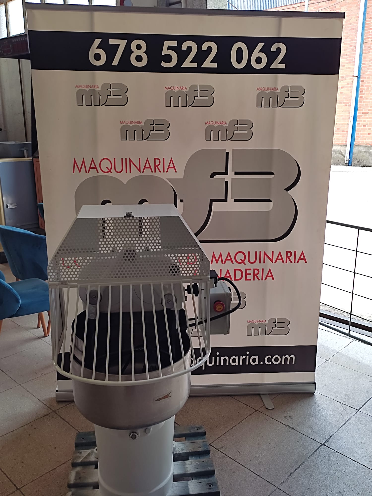 Capacidad para 12 kg de harina, 18 de masa. Trifásica 380V, con todas las medidas de seguridad y en perfecto estado.