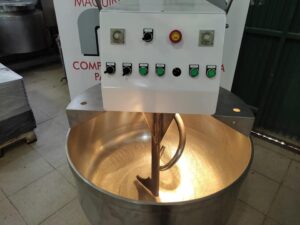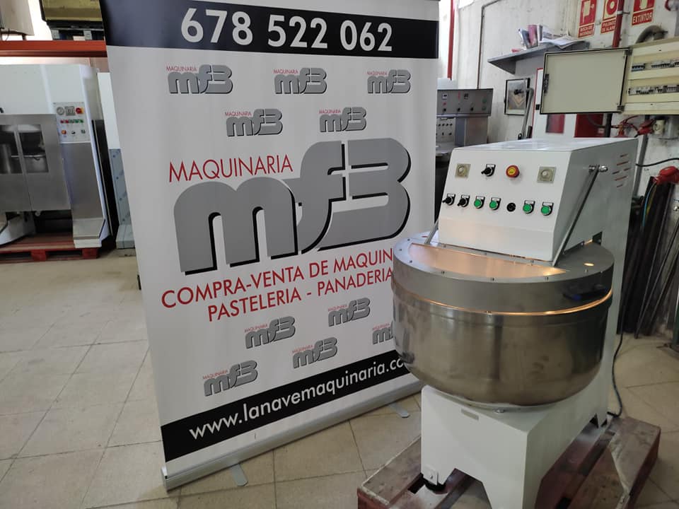 Trifásica 380V. Capacidad para 40 kg de harina, dos velocidades en manual y automático. Programable, con inversor de giro, luz que ilumina la masa y con todas las medidas de seguridad.