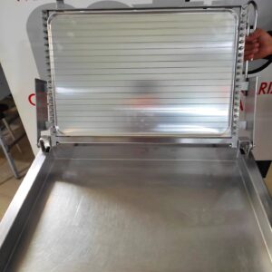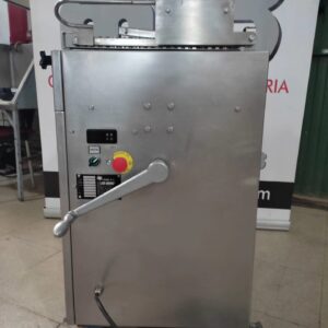 Fabricada en España en 2011, totalmente en acero inoxidable. Monofásica 220V, potencia 1’6Kw. Medidas: ancho 95 cm, alto 105 cm, fondo 60 cm cerrada y 105 abierta.