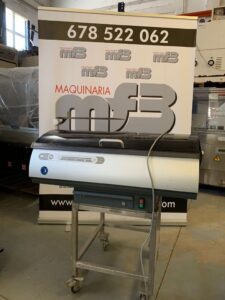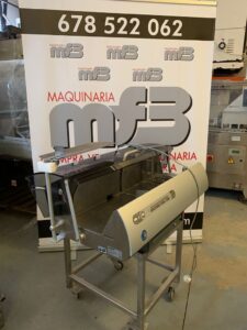 Cortadora-rebanadora de pan automática marca BIZERBA. Totalmente de acero inoxidable y en perfecto estado. Fabricación alemana. Ancho de corte regulable desde 3 mm hasta 30 mm. 2 velocidades.