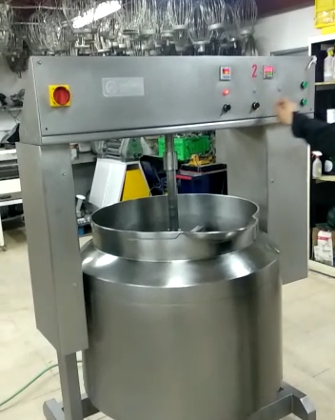 Cuececremas marca Juan Alabart. Capacidad para 200 litros, con cuatro resistencias. Potencia 14’5kw, trifásico 380V, año de fabricación 2000. Temporizador y graduacion de temperatura, volcado con motor, todo en acero inoxidable.
