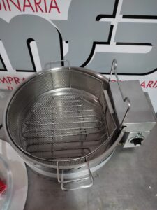 Freidora Salva con capacidad para 20 litros. Trifásica 380V. Con termostato de temperatura. Toda en acero inoxidable. Cestillo y resistencias extraíbles.