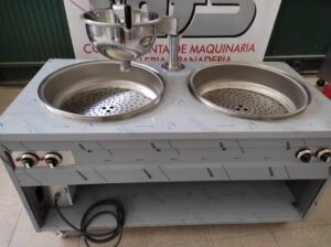 Se puede adquirir por conjuntos de freidora + dosificadora, tanto doble como sencilla, o piezas por separado, también tenemos la dosificadora con un soporte con ruedas.