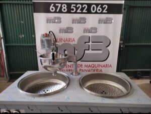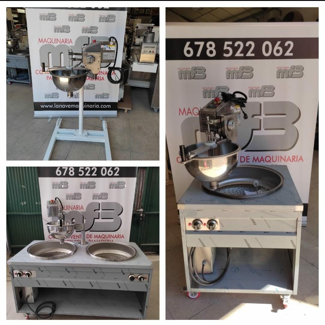 Freidoras y dosificadoras para buñuelos de nueva fabricación en acero inoxidable.