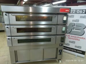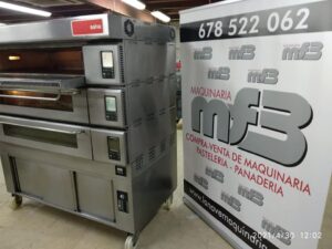 Horno SALVA modular, de tres cámaras con fermentadora incluida, en acero inoxidable y con capacidad de cada cámara para 3 latas de 60×40 y una altura de 20 cm
