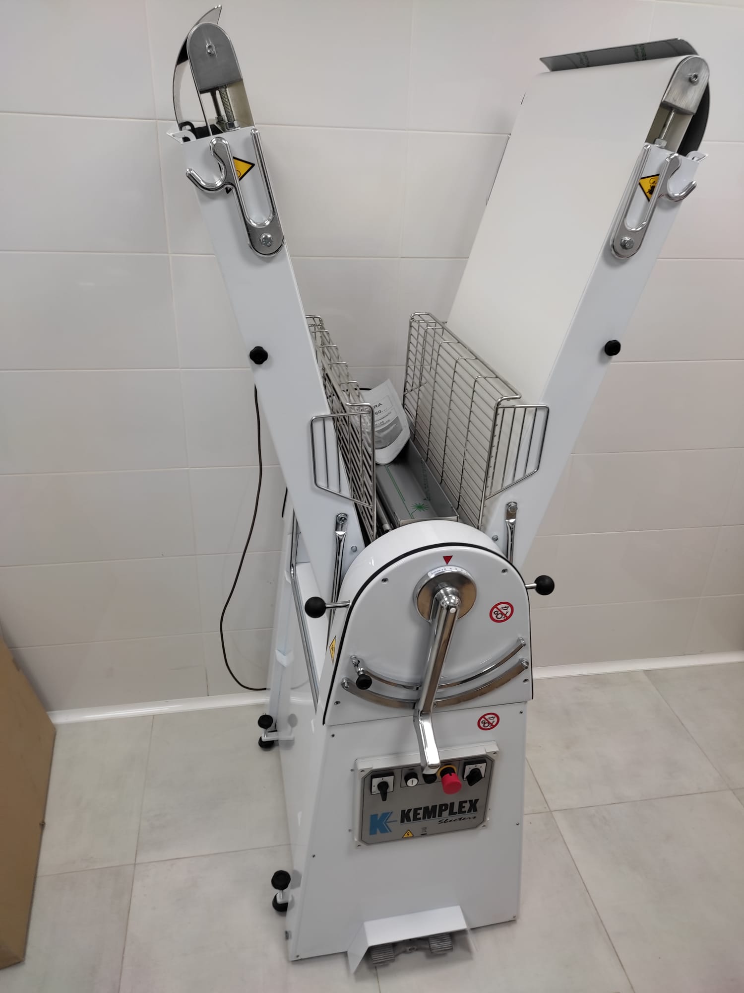 Laminadora nueva marca Kemplex. Fabricación italiana. Trifásica 380 V, con dos velocidades. Disponible en varias medidas, tableros de 50 y 60 cm de ancho y largo desde 70 hasta 140 cm por tablero.
