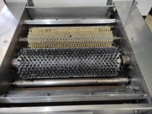 Para latas de 60 x 40 cm. Toda en acero inoxidable, con rodillos nuevos y todas las medidas de seguridad. En perfecto estado.